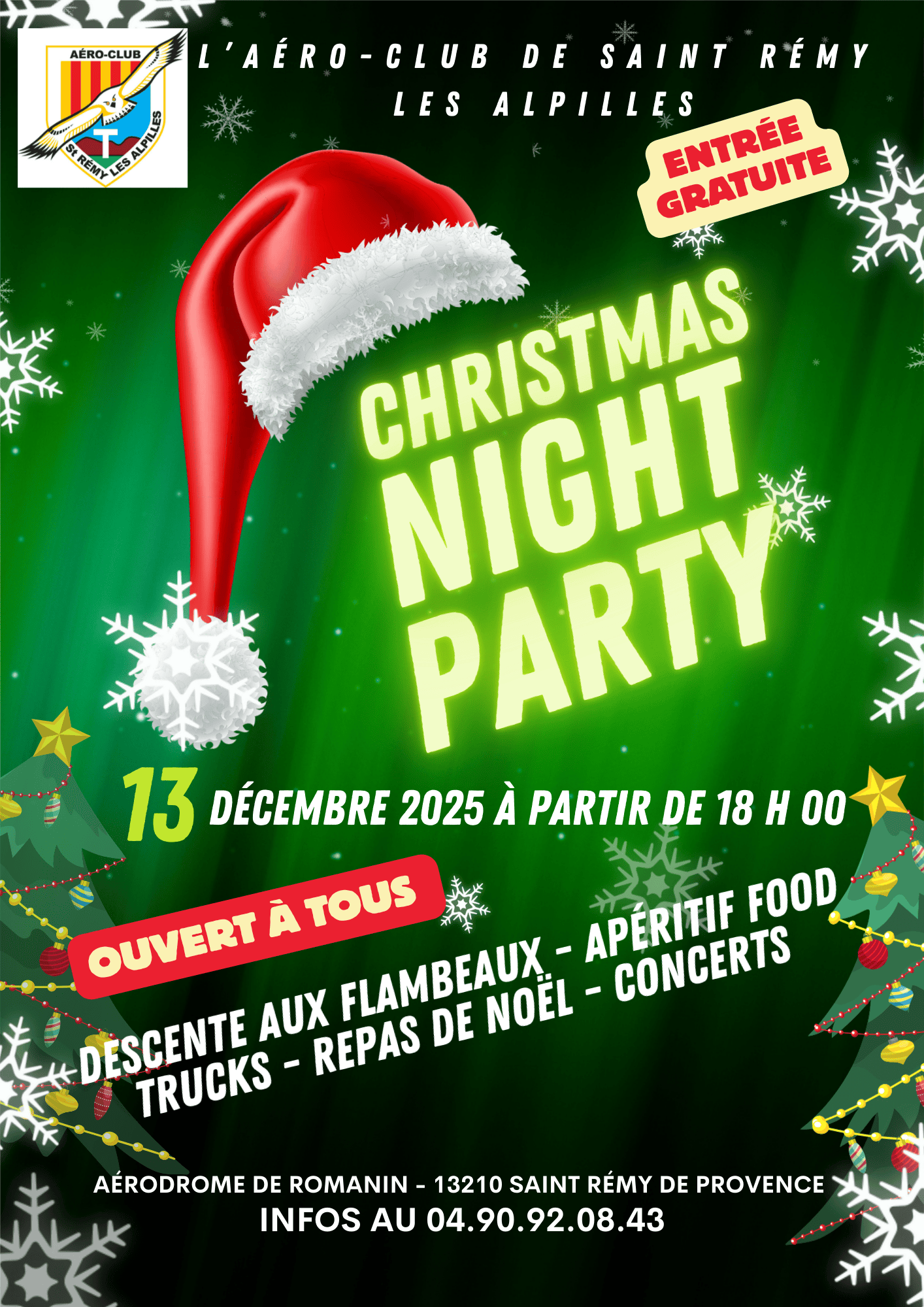 Le samedi en soirée, venez assister à un évènement unique dans la région : la descente de la piste aux flambeaux, avec la participation des membres de l’aéro-club de Saint Rémy et des associations Saint Rémoises suivi de l’apéritif de Noël à partir de 19 H 00 (ambiance musicale années 80/90).