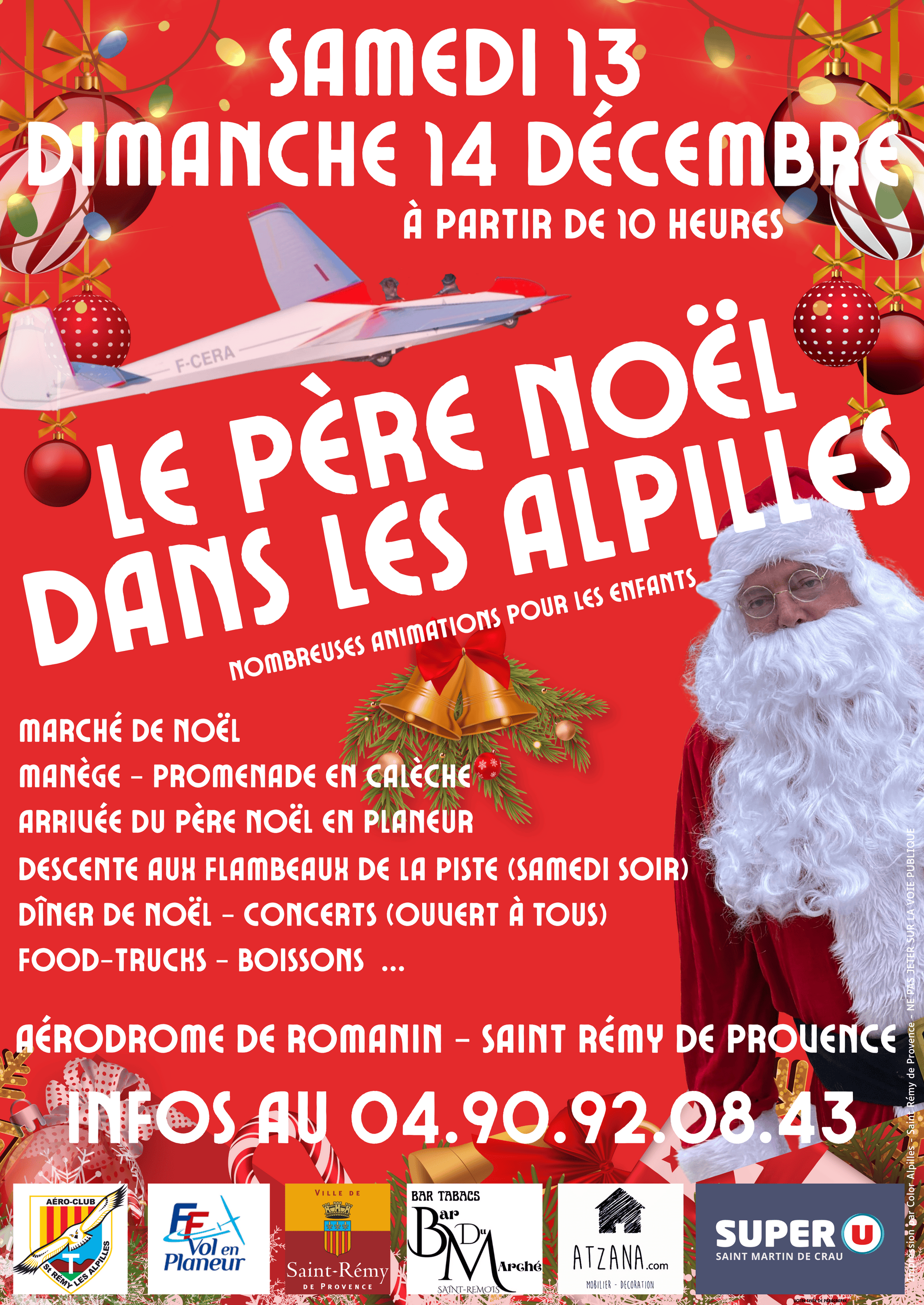 Le Père Noël est de retour dans les Alpilles, le samedi 13 et le dimanche 14 décembre prochain. Samedi 13 décembre, marché de Noël de 10 H 00 à 21 H 00, dimanche à partir de 10 H 00 jusqu’à 18 H 00.